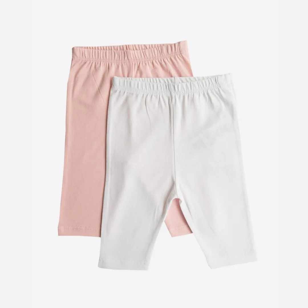 Базовые леггинсы-капри для малышки длиной до середины голени — в упаковке сразу два цвета: нежно-розовый и белый. Мягкий хлопковый трикотаж с эластаном тянется во все стороны, не давит на животик и идеально подходит под любой летний топ, тунику или платье. Kitikate S60742