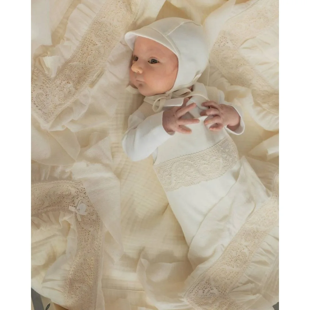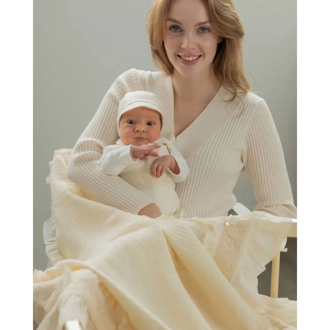 Муслиновый плед с рюшей из органического хлопка. Изысканный и невероятно красивый! Подарит вашему малышу чувство необычайной легкости, комфорта и безопасности! Идеальный вариант для выписки малыша из роддома в жаркое время года. В дальнейшем Вы сможете использовать такой плед, как плед для прогулок с малышом. Модель: 08004-03007-009