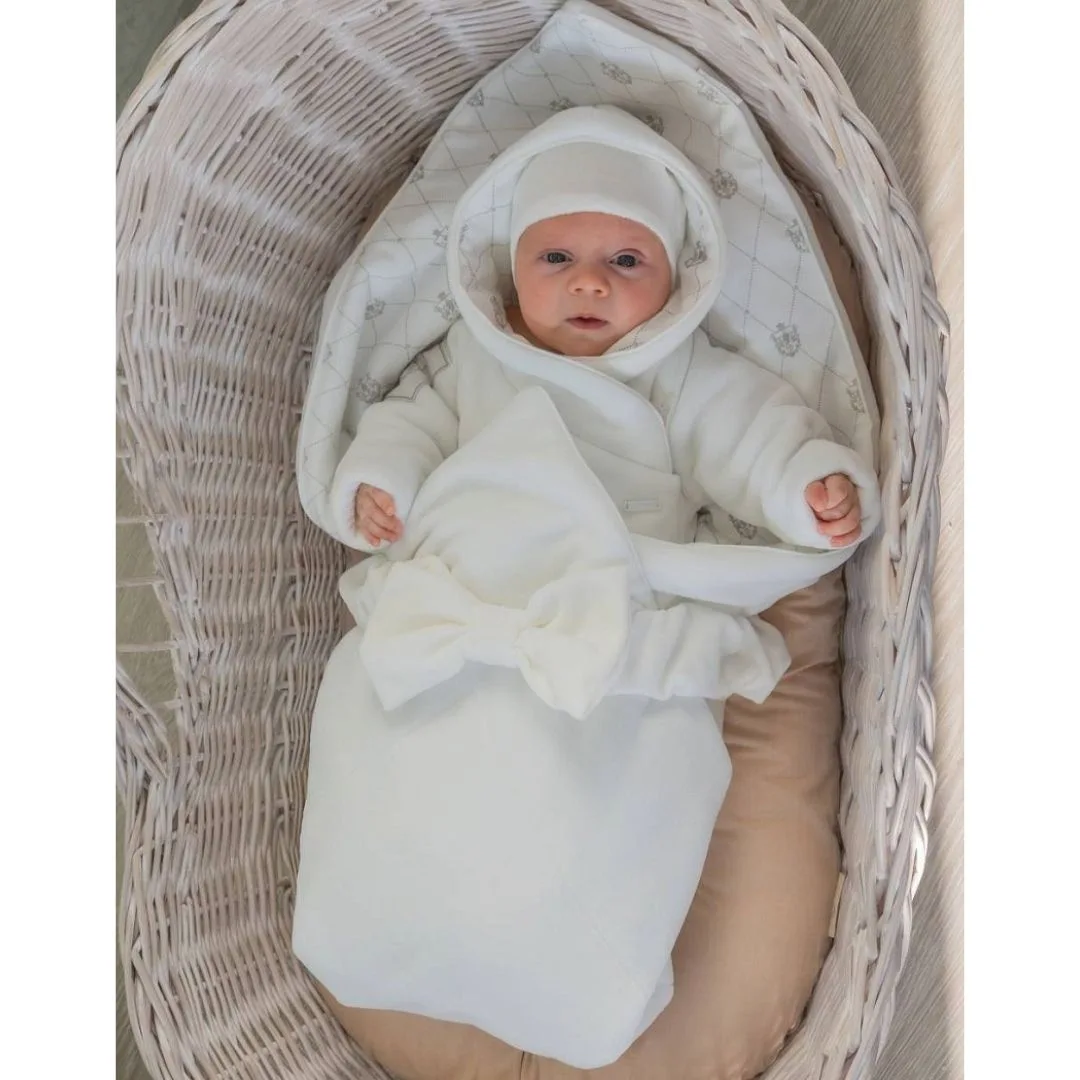 Утепленный конверт-плед идеально подойдет для малышей, обеспечивая комфорт и тепло в прохладные дни. Выполнен в нежном кремово-белом цвете, который легко сочетается с разными оттенками детской одежды. Размер 95х95 делает плед компактным и удобным для использования дома или на прогулке. Благодаря утеплителю, изделие сохраняет тепло.