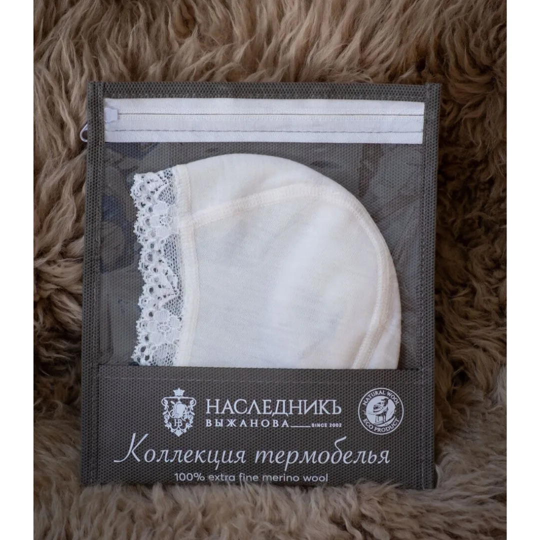 чепчик для младенцев с кружевом 100% шерсть мериноса молочный Наследникъ Выжанова НВ2018-МОЛ