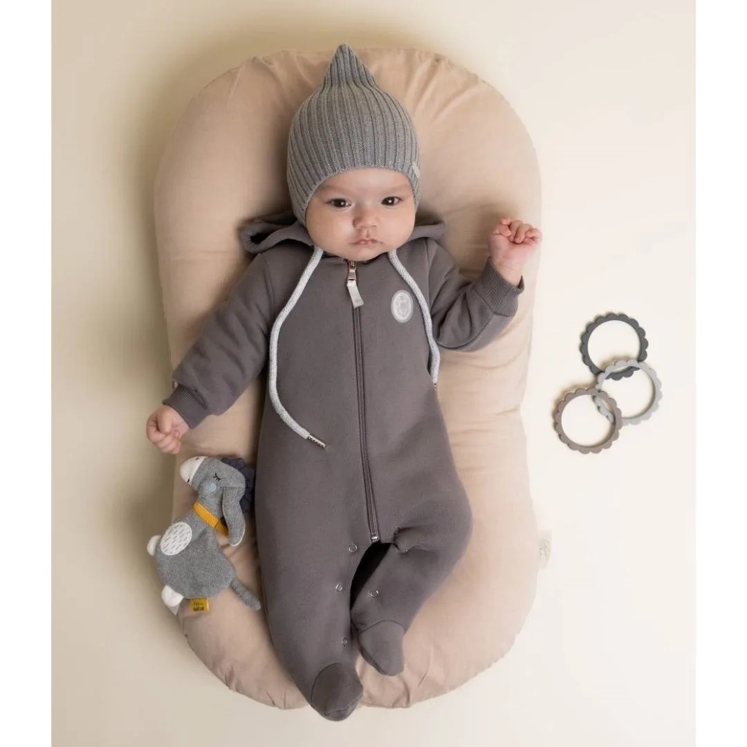 Межсезонный флисовый теплый комбинезон для новорожденных. Верх застегивается на молнии, нижняя часть на кнопках – очень удобно для смены подгузника. Капюшон защитит голову ребенка от ветра и холода. Цвет: агат.