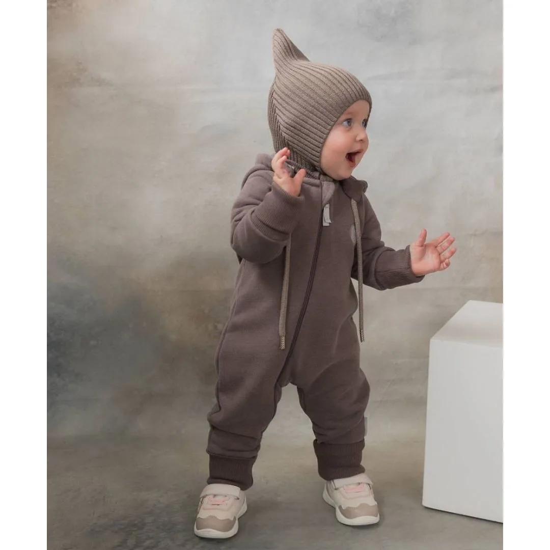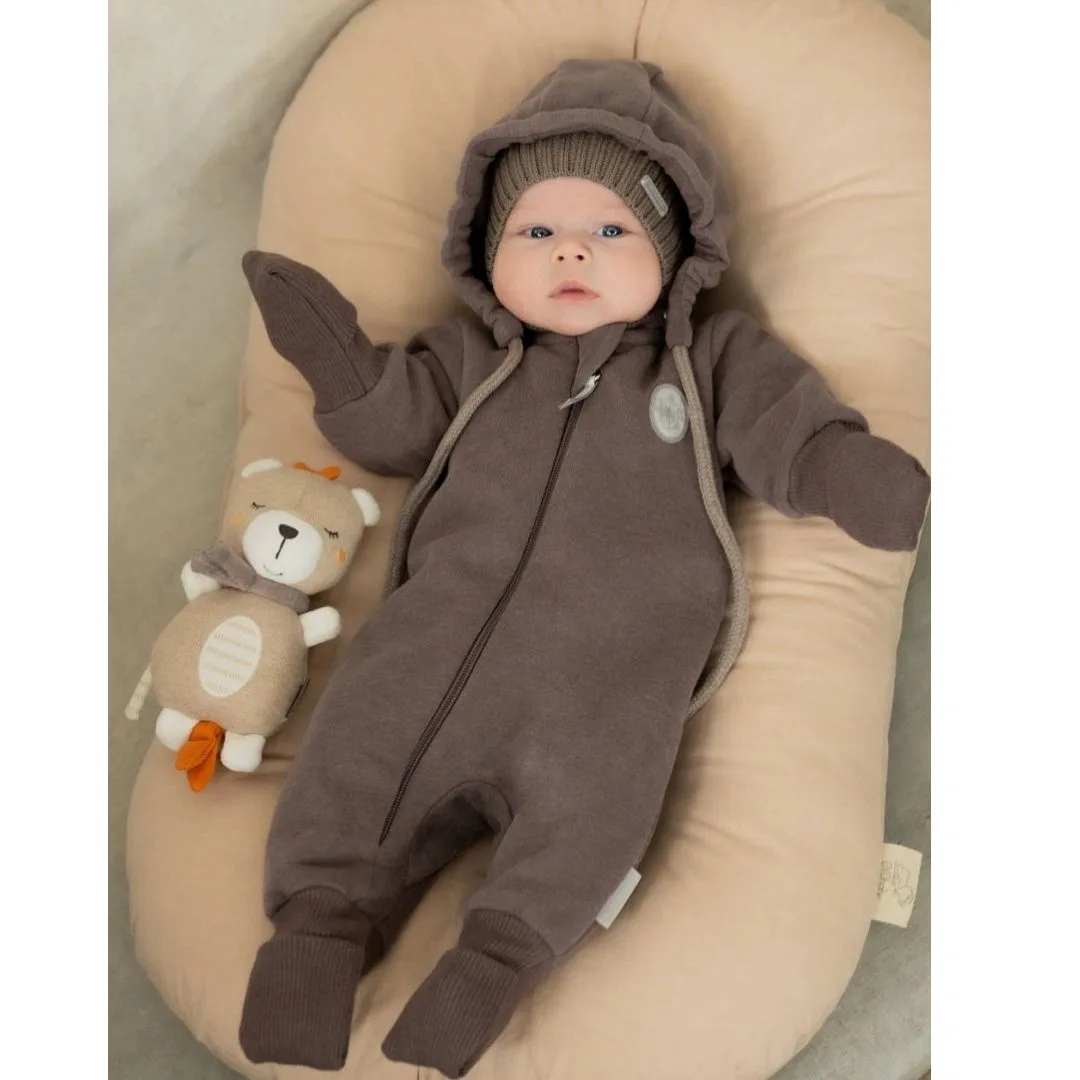 Межсезонный комбинезон с системой роста. Застегивается на молнии. Манжеты на ручках и ножках растут вместе с малышом. Цвет: кофейный мусс