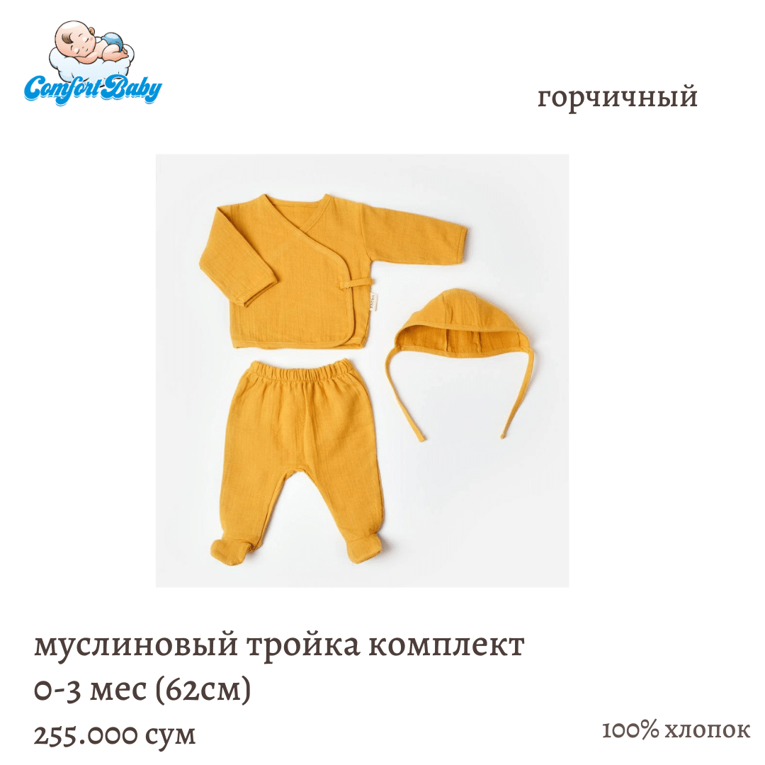 муслиновая тройка: распашонка, ползунки, чепчик