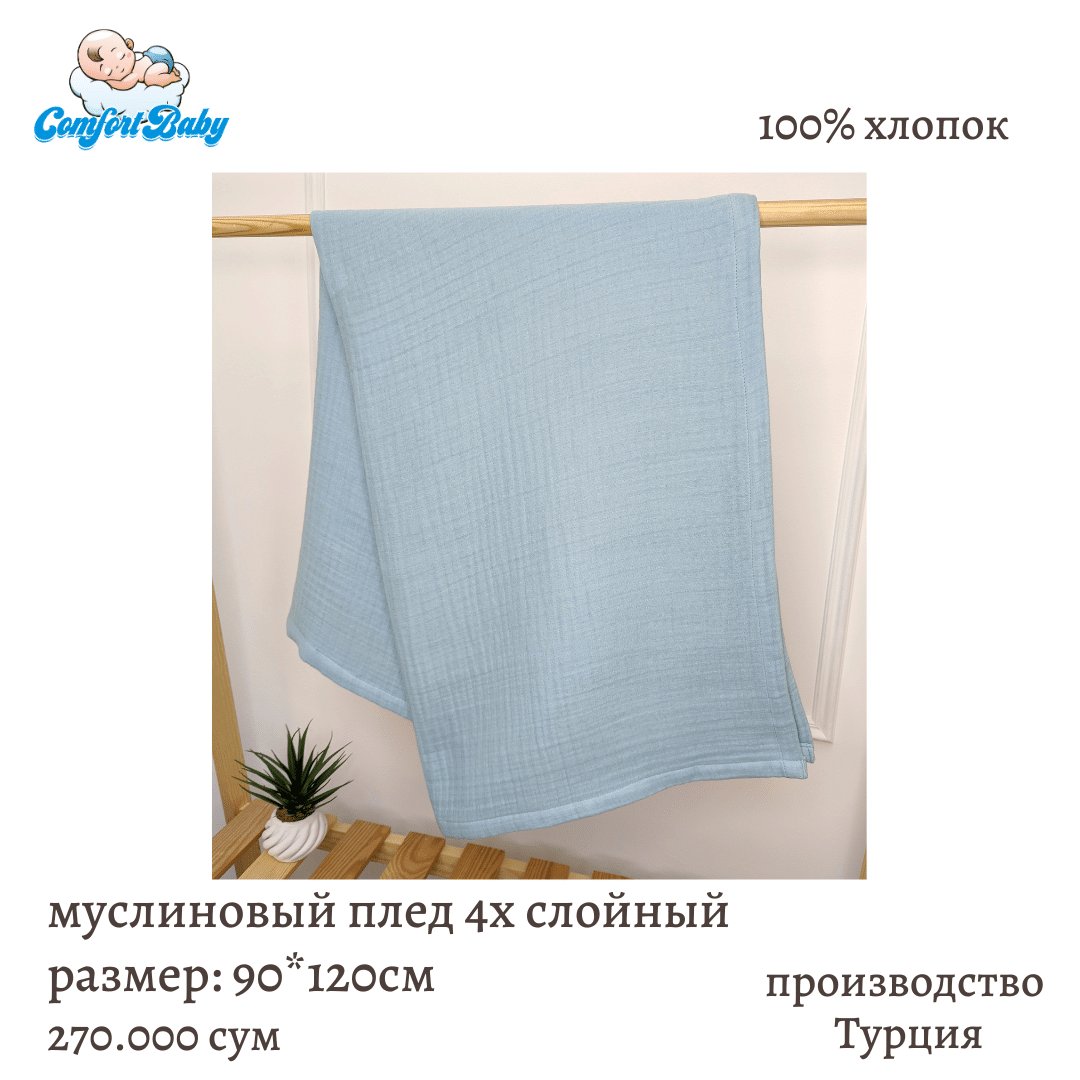 двухслойный теплый плед с утеплением голубой 80*110см Interbaby Испания