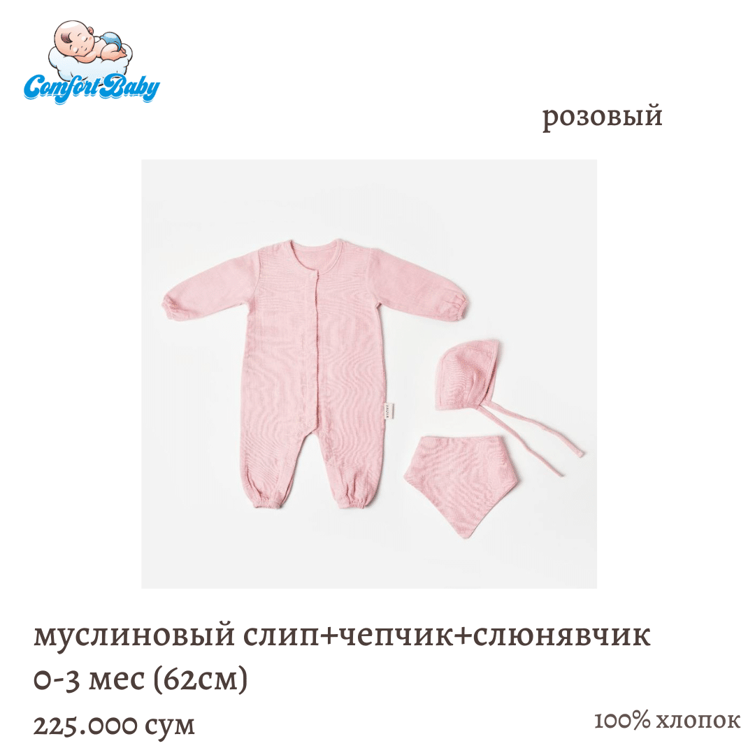 муслиновый слип в комплекте с чепчиком и слюнявчиком